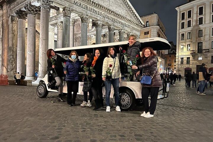 Discover the magic of Rome after dark on this exclusive private evening tour. Glide through the city’s enchanting streets in a comfortable golf cart, avoiding daytime crowds and heat, while your private guide brings the city’s history and legends to life.
